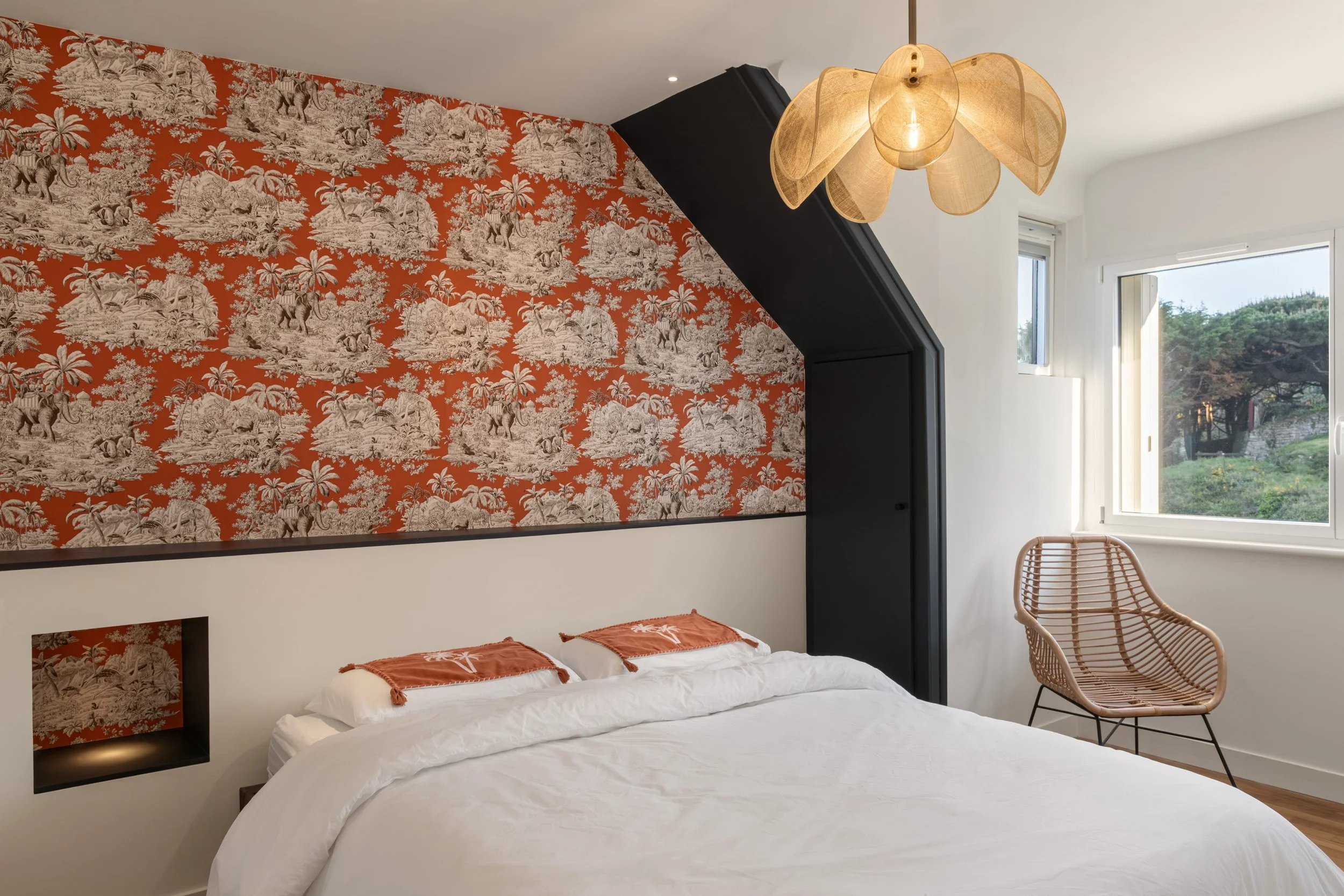 “ Nous avons acquis il y a plus de 20 ans une petite maison nichée entre le vert d’un massif rocheux et le bleu de la mer. Pourtant idéalement situé à une dizaine de mètres de l’Anse de Port Mer à Cancale, cette maison n’avait pas de vue directe sur cette magnifique baie s‘ouvrant sur le Mont St Michel.