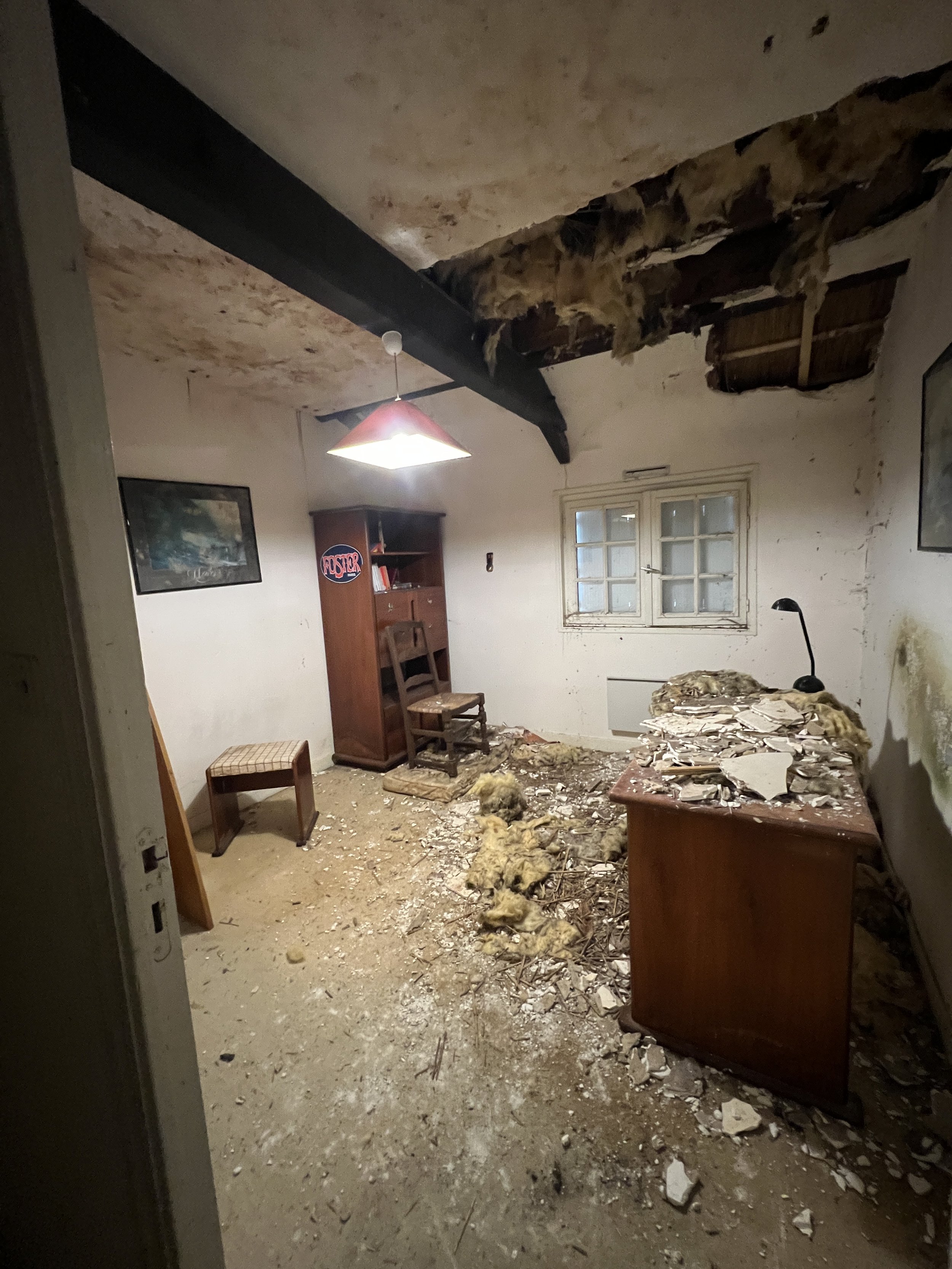 Une fenêtre de toit adaptée au chaume a été rajoutée afin d’apporter de la lumière dans la pièce.