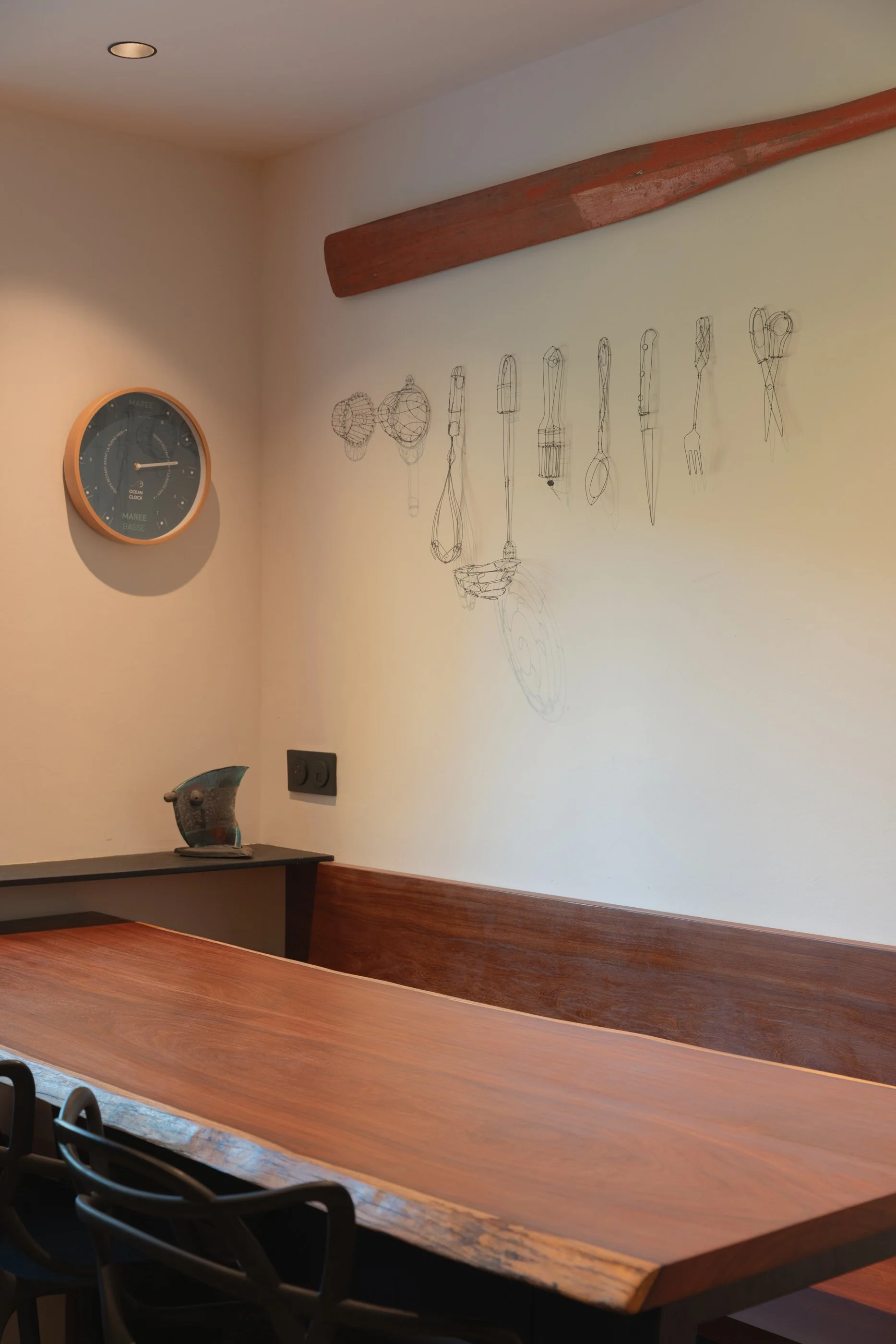 Le bois de rose à la finition huilée et rapporté à l’époque par le père d’Erwan c’est vu offrir une nouvelle vie afin de créer un raccord avec les couleurs du sol également d’origine.