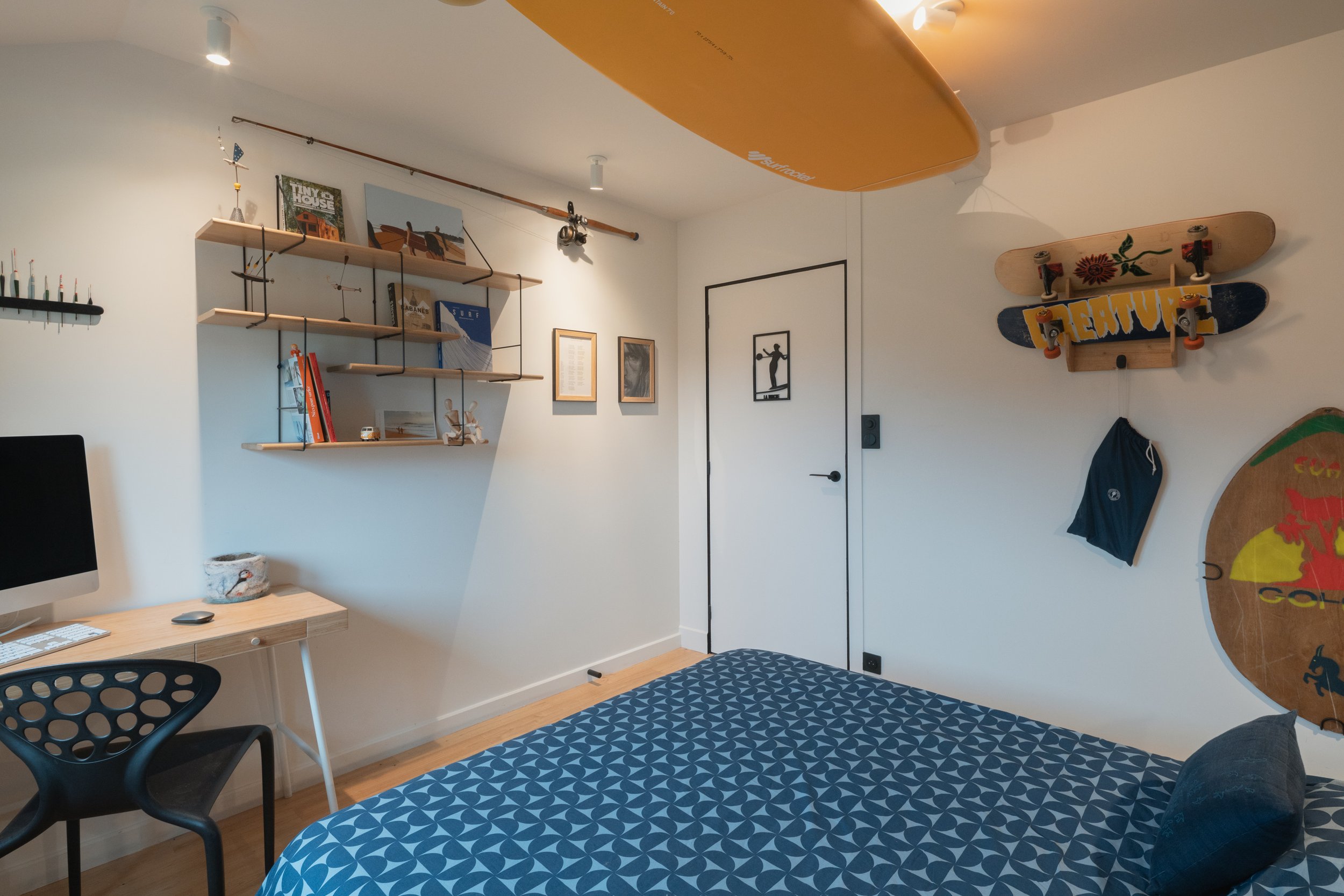 L’espace mezzanine est dédié à la détente, la lecture, la TV, et au couchage d’appoint.